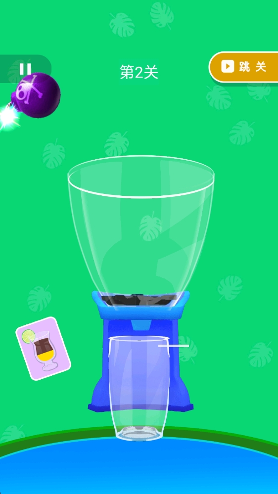3、游戏中,将水果准确放入搅拌机,制作果汁,完成关卡任务,体验榨汁乐趣,点击榨汁。