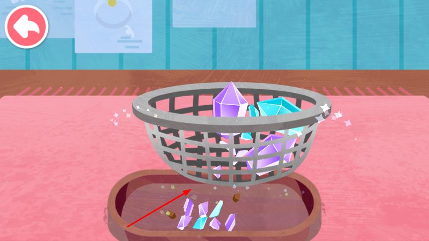 2、挖掘出的水晶宝石会被收集到一个篮子里,通过左右滑动篮子筛选宝石,收集足够的水晶宝石后,进入加工场景。