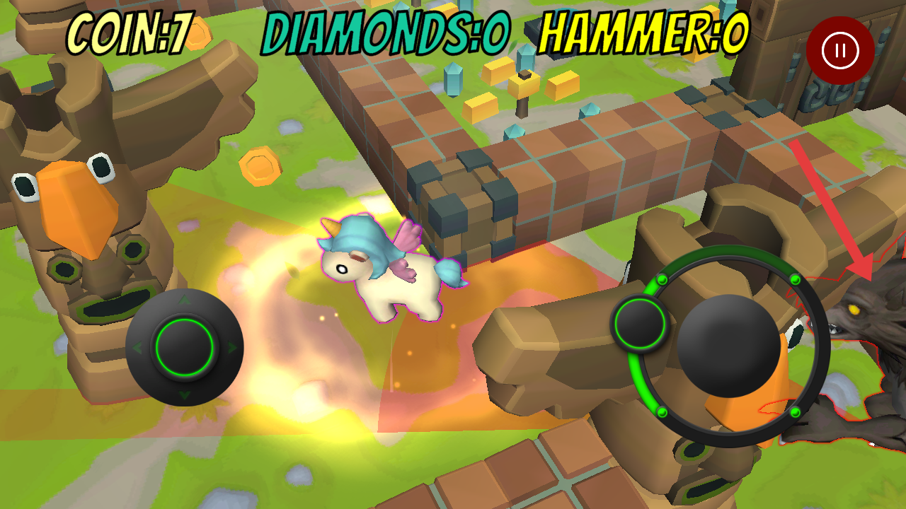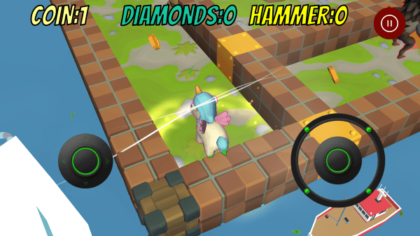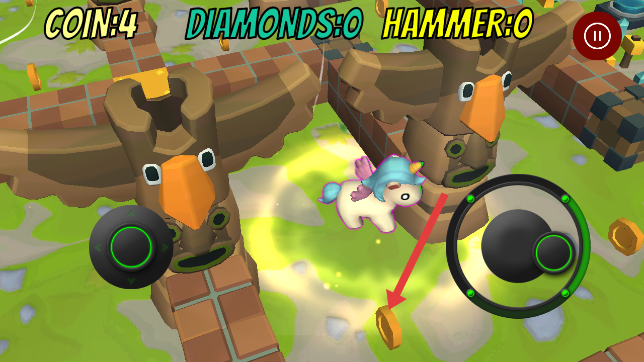 1、需要操控独角兽,通过虚拟摇杆进行移动,优先拾取场景中的金币,积累COIN游戏资源。