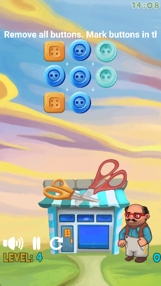 2、挑战模式提升技巧:选择喜欢的模式进行挑战,在关卡中加快匹配速度,熟悉不同形状纽扣的组合规律,逐步提升匹配技巧,顺利通过更多关卡。