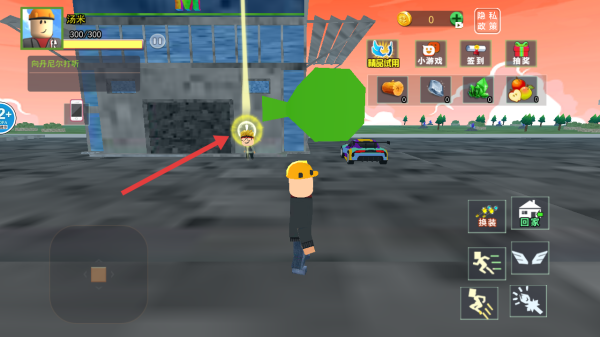 1、点击开始游戏,选角色进入乐高城市场景,操控移动,找带光圈NPC,如建筑前小人接任务。