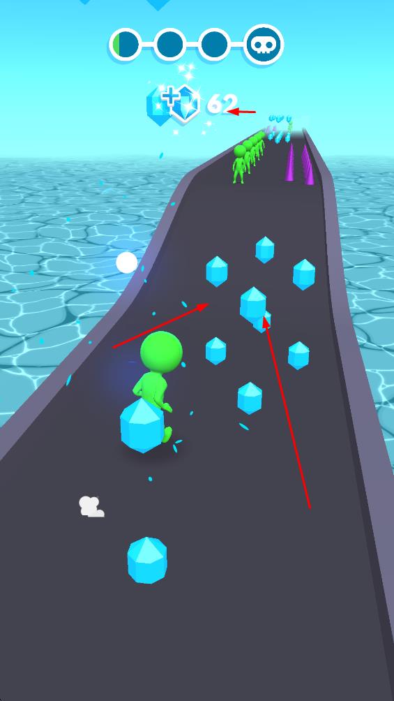 2、收集蓝色水晶道具,积累水晶数量,水晶数量会在上方显示,水晶可用于提升小人能力或解锁游戏内容。
