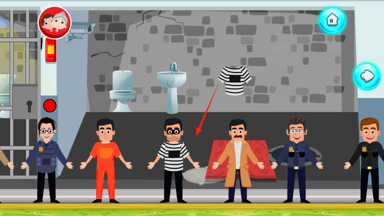 3、识别人物特征,匹配服装,点击囚犯关联条纹衣,完成配对体验身份识别机制。