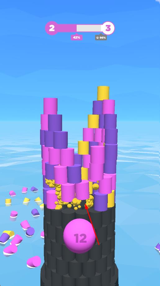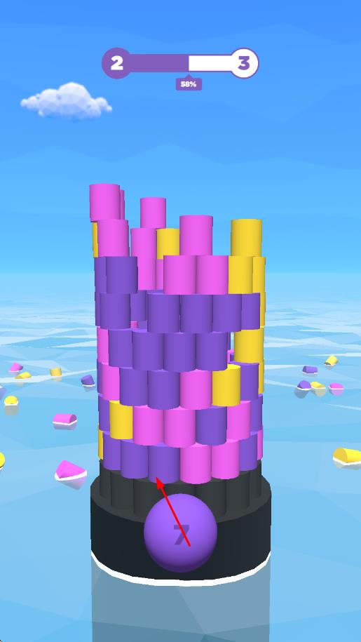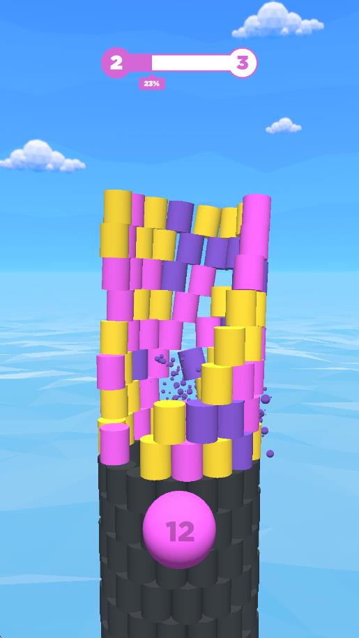 1、进入游戏后,观察彩色塔的结构与层级分布,通过点击或滑动屏幕控制操作,完成基础的堆叠或匹配动作,熟悉游戏机制。