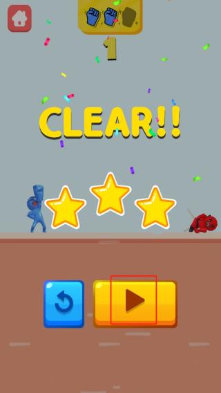 3、成功击败敌人后,点击黄色播放按钮,进入下一关卡,继续挑战新敌人,运用相同操作技巧推进游戏。