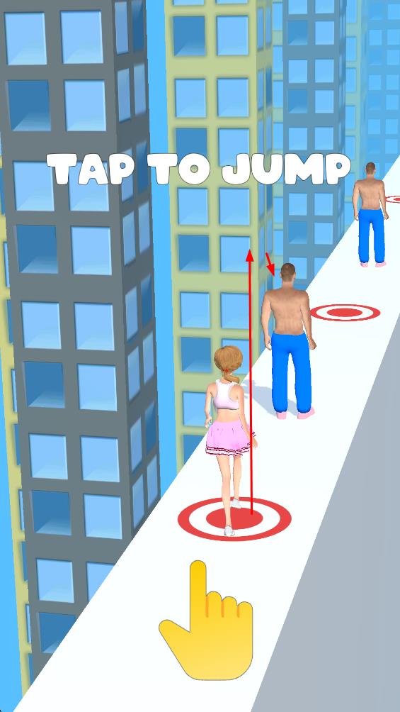 2、,根据提示,点击屏幕使角色跳跃,越过障碍物,继续朝着目标前进。