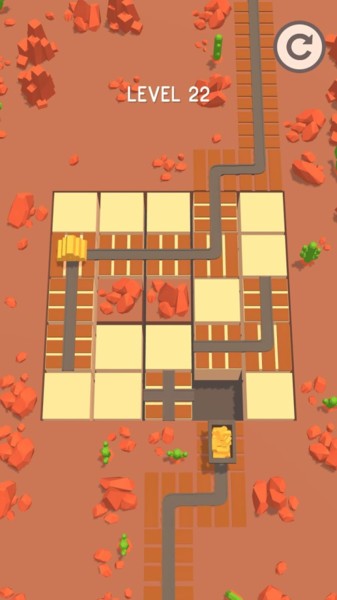 1、将图中所有的轨道连接在一起,连接在矿车脚下的轨道,让矿车顺利从轨道穿过进入下一关。