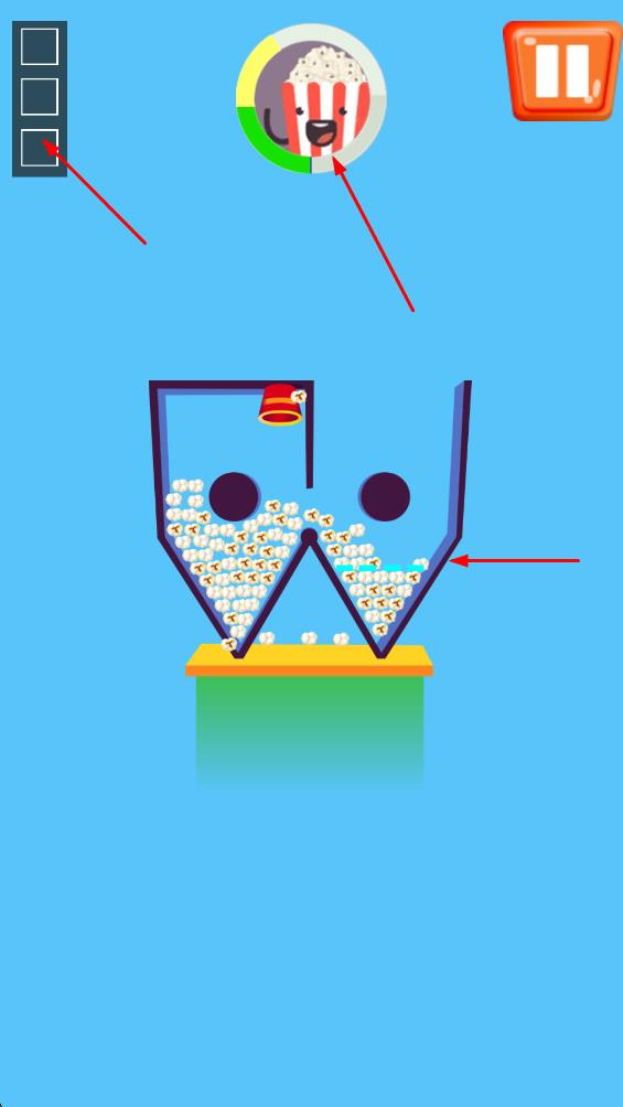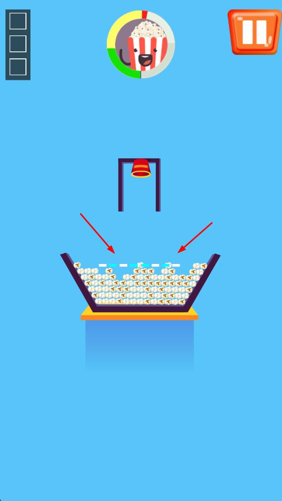 2、画面简约聚焦玩法:画面并非重点,仅有简单机关、爆米花桶和线条,让玩家注意力完全集中于如何引导爆米花入桶,简约设计避免视觉干扰,使操作与思考更纯粹。