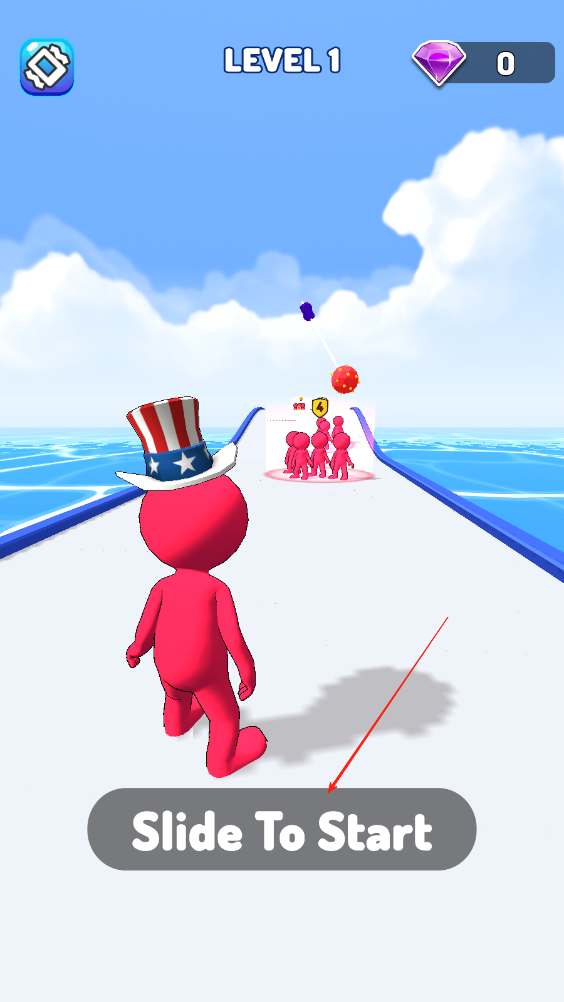 1、小人往前移动收集队友,收集途中注意避开前方摇摆的尖刺铁锤,以及除此之外的各种障碍。