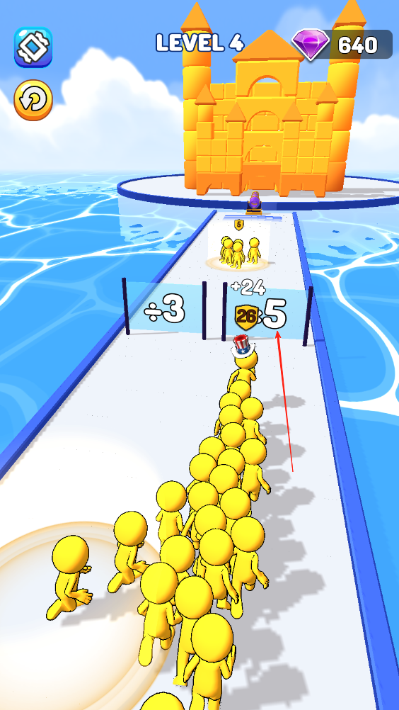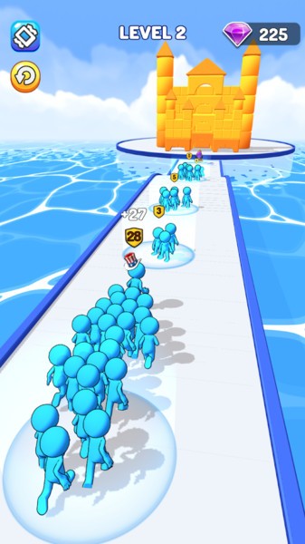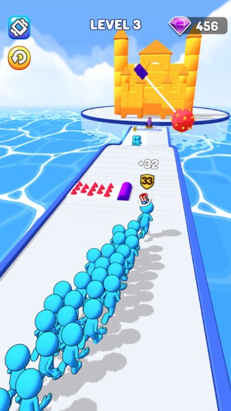 2、后面的关卡不仅会出现各种不同的障碍,还会出现加减人数的屏障,选择能够使自己队伍人数变多的屏障通过,人数越多越好。
