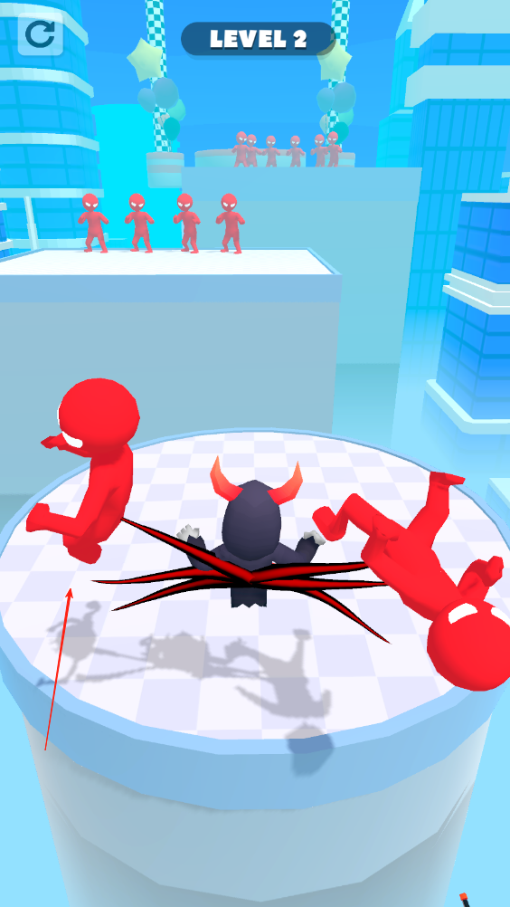 1、点击死神面前的敌人,死神会抓住敌人,左右手各抓一只,再向上滑动屏幕,攻击两个敌人,让敌人倒下。