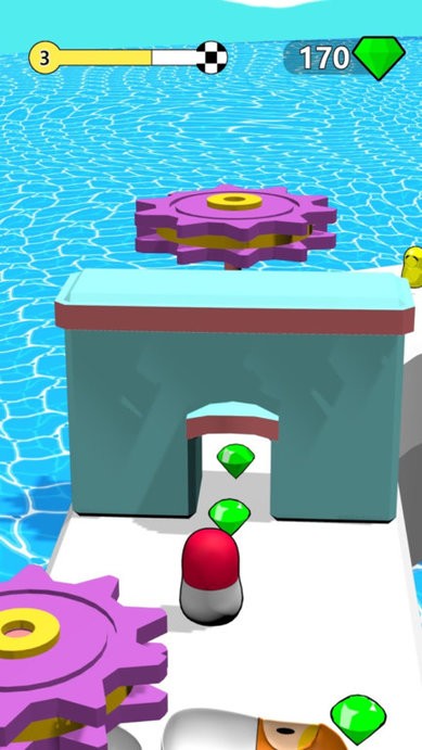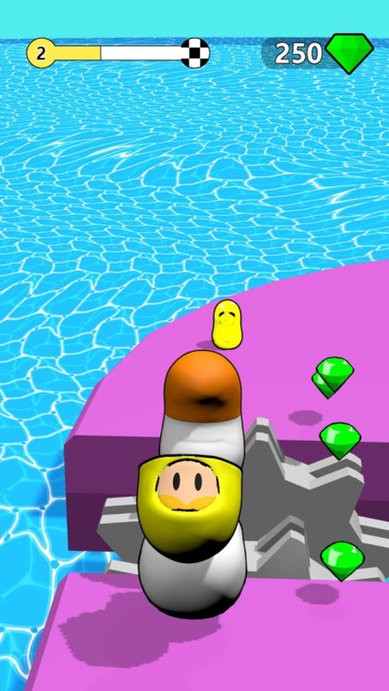 2、遇上障碍时,可以点击屏幕让小豆豆退掉一层外壳,跳跃而起,继续向前移动,遇上彩色钻石的时候也要收集。