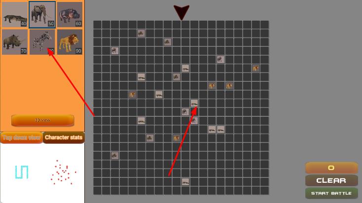 2、点击选择想要出战的动物,将其放置到右侧的战斗网格区域中,通过合理搭配不同动物,布置战斗阵容。