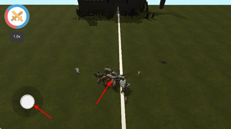3、布置好阵容后,点击START BATTLE按钮,开始战斗,通过操控虚拟摇杆来控制视角,观察动物们的战斗情况。