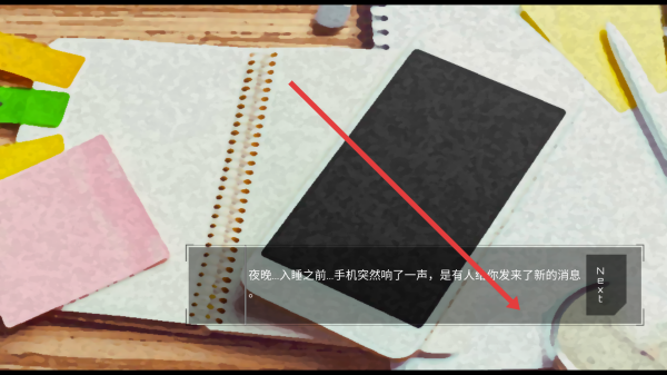 2、需要注意场景细节手机、便签,可能关联隐藏剧情,按Next快速读文本,别跳过关键对话。