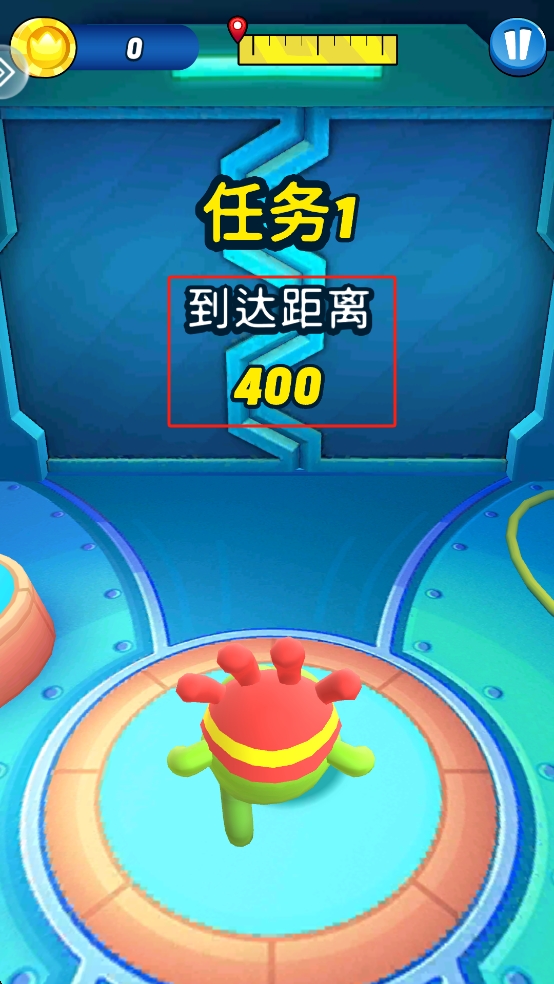 1、进入作品后我们操控绿色小怪物前进,紧盯上方任务栏,明确要达成到达距离400的目标。