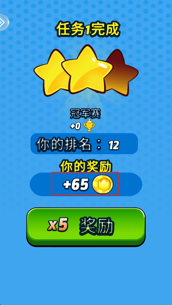 3、完成一段跑酷后,会出现结算界面,查看获得的金币奖励,按需选择领取奖励,或点击相应按钮开启下一轮跑酷。