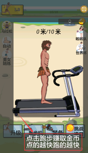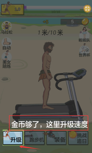 4、点击红框升级按钮,使用足够金币提升跑步速度。