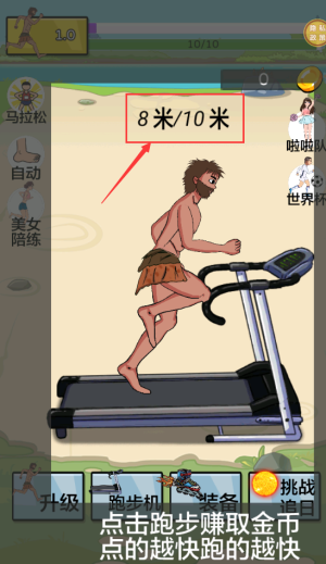 2、点击红框跑步机按钮,通过快速点击加速跑步。
