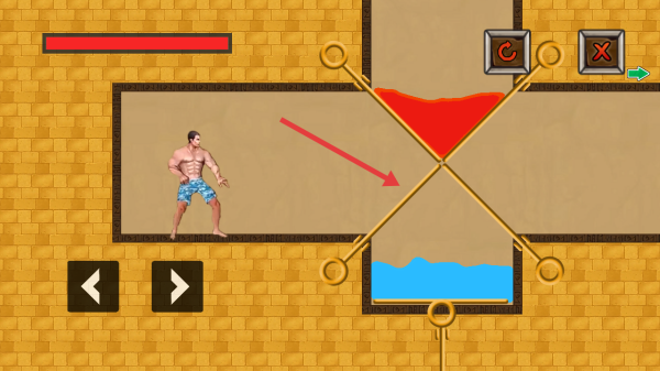 1、初始关卡,拉动交叉金针,引流红色危险液体,避免浇到角色,同时让蓝色安全区域连通,开辟前进通道。