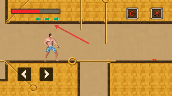 2、第二阶段,拉动横向金针,触发绿色箭头路径,引导角色沿安全路线移动,避开上方未知威胁。