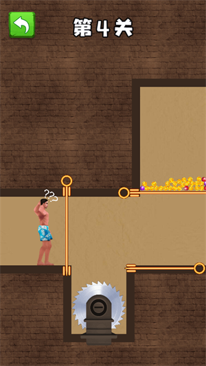 3、遇尖刺陷阱时,拉动对应金针,升起遮挡物或改变地形,让角色安全通过,持续推进解谜闯关。
