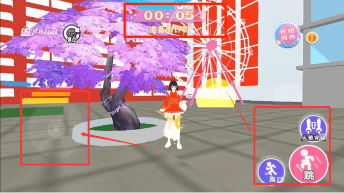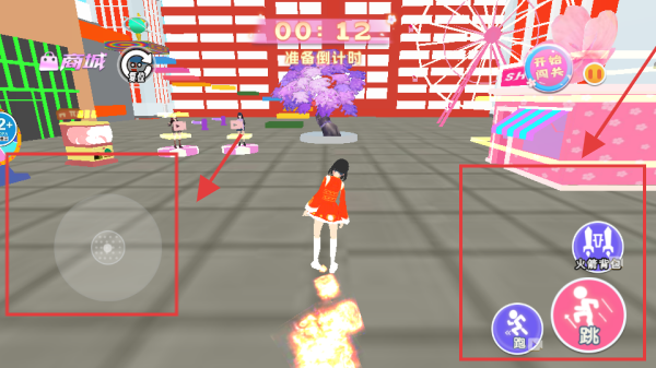 2、进入游戏场景后,利用左下角移动摇杆控制角色移动。