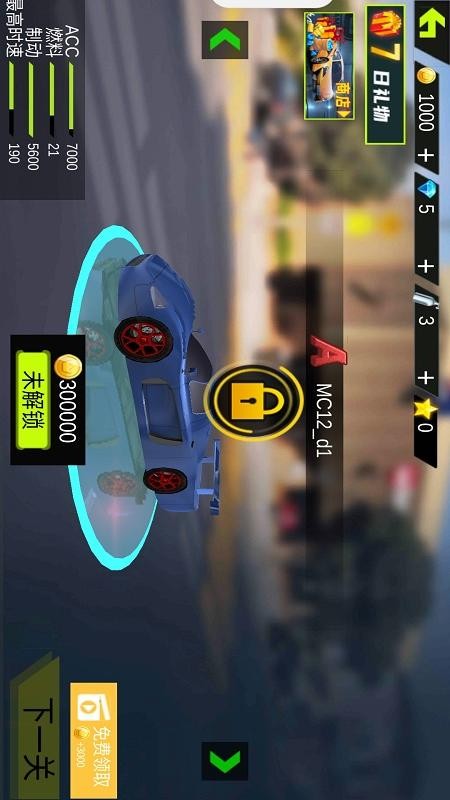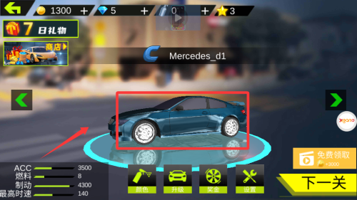 2、根据关卡特点挑选赛车,不同车辆的加速、极速和操控性差别很大。