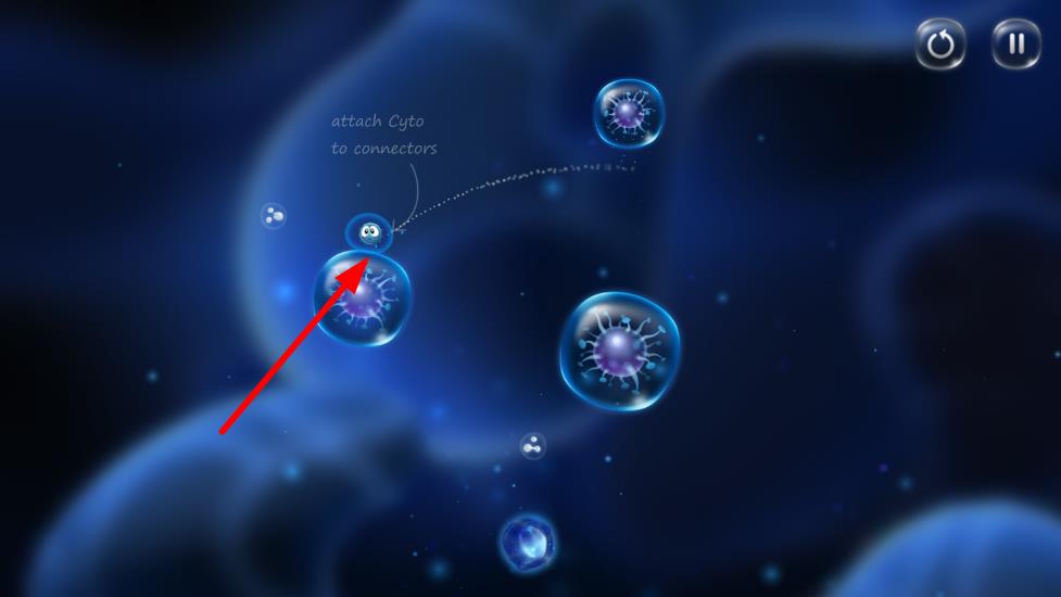 2、场景互动技巧:关卡中存在带纤毛的固定细胞,小细胞弹射至其表面时会被暂时固定,此基础上再次拖拽变形,进行二次弹射,通过多次弹射衔接,在不同固定细胞间移动。