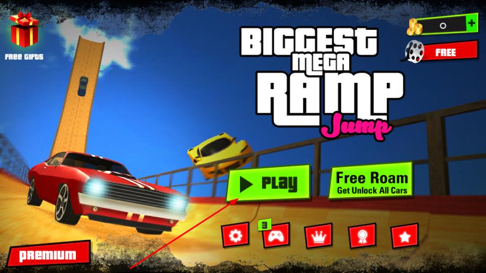 1、进入主界面,点击绿色Play按钮,开启赛车特技挑战,踏入刺激的巨型坡道冒险。