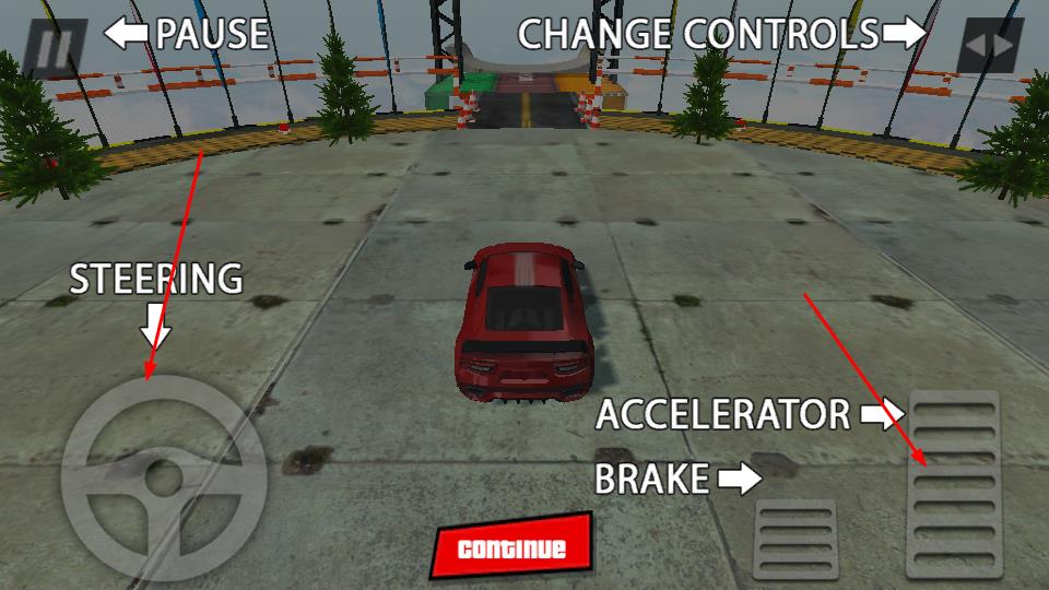 2、在操作设置界面,熟悉STEERING方向盘控制方向,ACCELERATOR油门加速、BRAKE刹车减速,点击ontinue进入赛道。