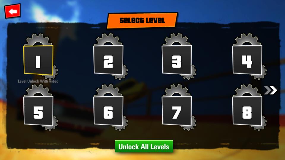 3、驾驶赛车驶向巨型坡道,把控油门与方向盘,在坡道上加速冲刺,完成高空跳跃特技,挑战顺利通过赛道。