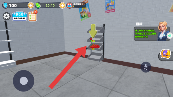 3、目标:为了获得更好的利润,可以通过在货架上粘贴标签来标价,呈现的是关卡中给货架物品贴标签的任务场景。
