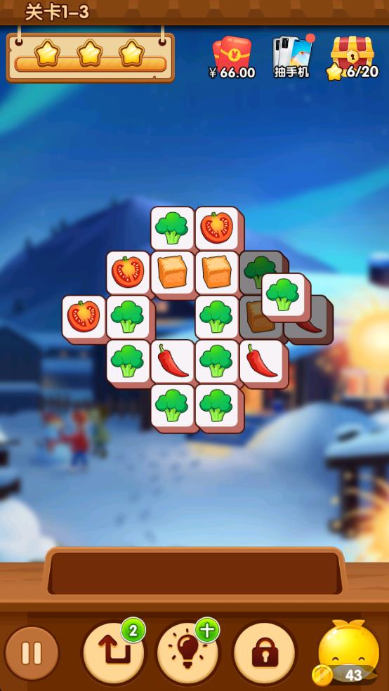2、关卡目标达成:每关都有明确目标,有的要达到指定分数,有的要消除特定数量的食物,比如第20关需消除20个冰淇淋,完成即可通关。