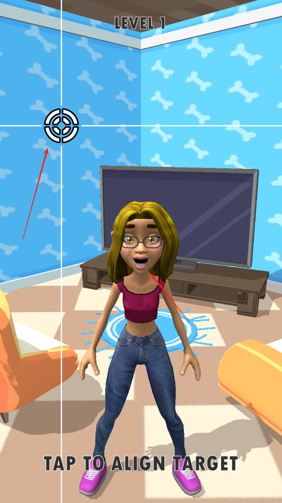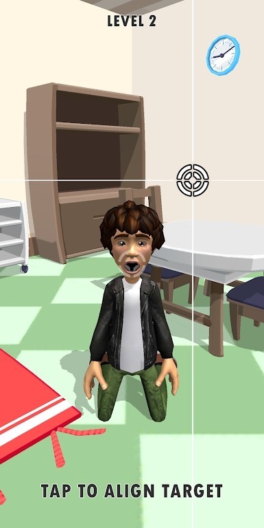 1、屏幕上方有一个准心再不停地左右移动,我们需要看准人物的嘴,当准心到嘴的上方时点击屏幕即可。