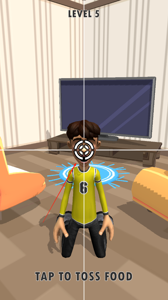 2、横向准心校准之后,需要继续瞄准人物的嘴,准心会上下移动,当准心对准人物的嘴时,即可点击屏幕抛掷食物给人物。