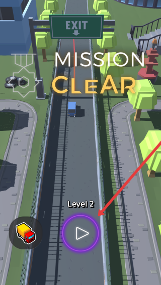 3、完成当前关卡,看到MISSION-CLEAR提示后,点击Level-2对应的紫色播放按钮,进入下一关挑战。