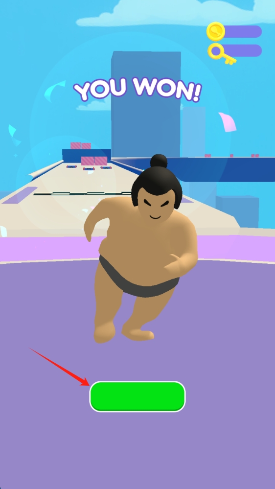 3、当看到YOU-WON提示时,说明成功通关,点击绿色按钮,继续挑战下一关,享受跑酷的乐趣。