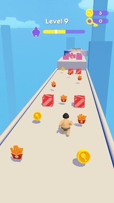 2、动态体型变化机制:角色在奔跑中会随时间变瘦,需通过进食维持状态,同时躲避障碍物,形成独特的“瘦身-补给”循环挑战。