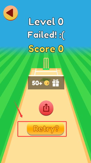 3、挑战失败时可点击retry按钮立即重试,系统会自动重置当前关卡进度。