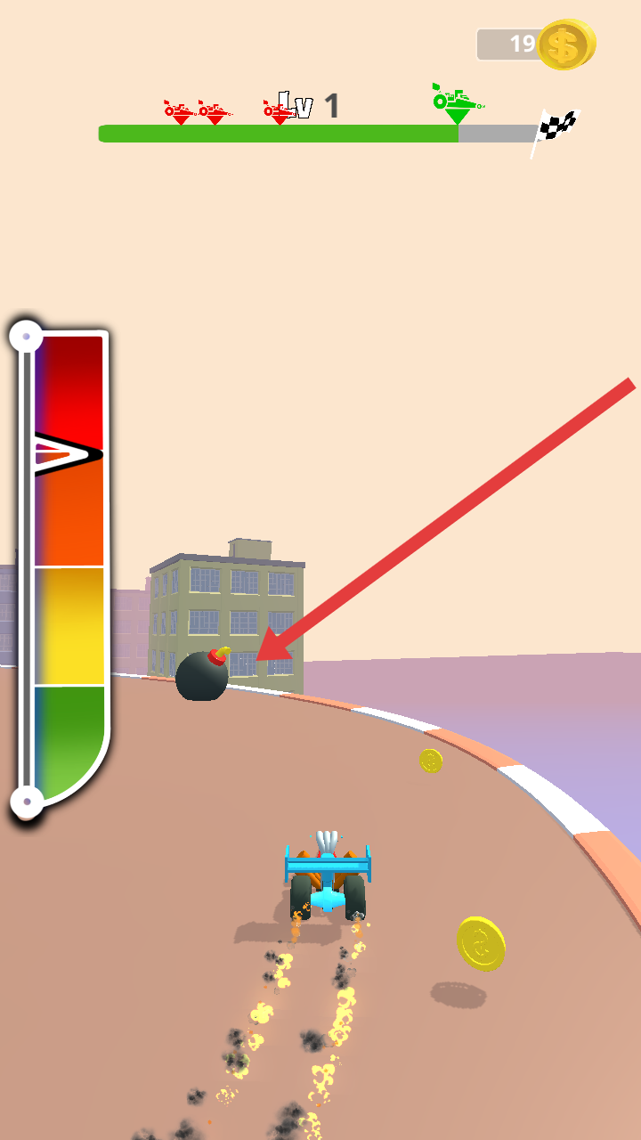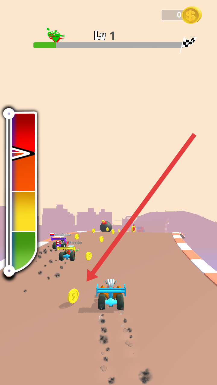 3、需要留意赛道上的炸弹障碍,通过左右滑动屏幕来进行及时的躲避,避免碰撞以确保安全前行。