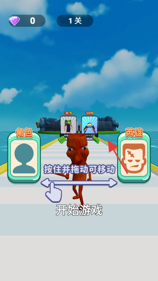2、在游戏中,可通过按住并拖动来移动角色,同时可选择不同的角色和英雄,提升游戏体验。