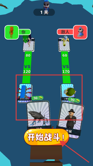 3、在战斗界面,选择合适的卡牌,点击开始战斗按钮,与敌人进行战斗,利用卡牌属性击败敌人,完成关卡任务。