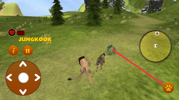 2、优先狩猎弱小的动物前方遇到的狼,点击右下角的爪子的图标,连续点击该技能进行攻击。