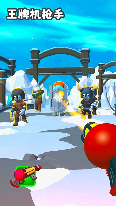 1、滑动屏幕控制准星移动,点击射击按钮发射子弹消灭敌人。