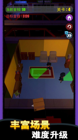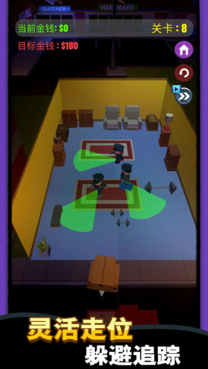 3、每个关卡都设有独特的障碍配置和敌人分布,玩家需要根据实际情况调整战术,如选择潜行路线或正面突破。