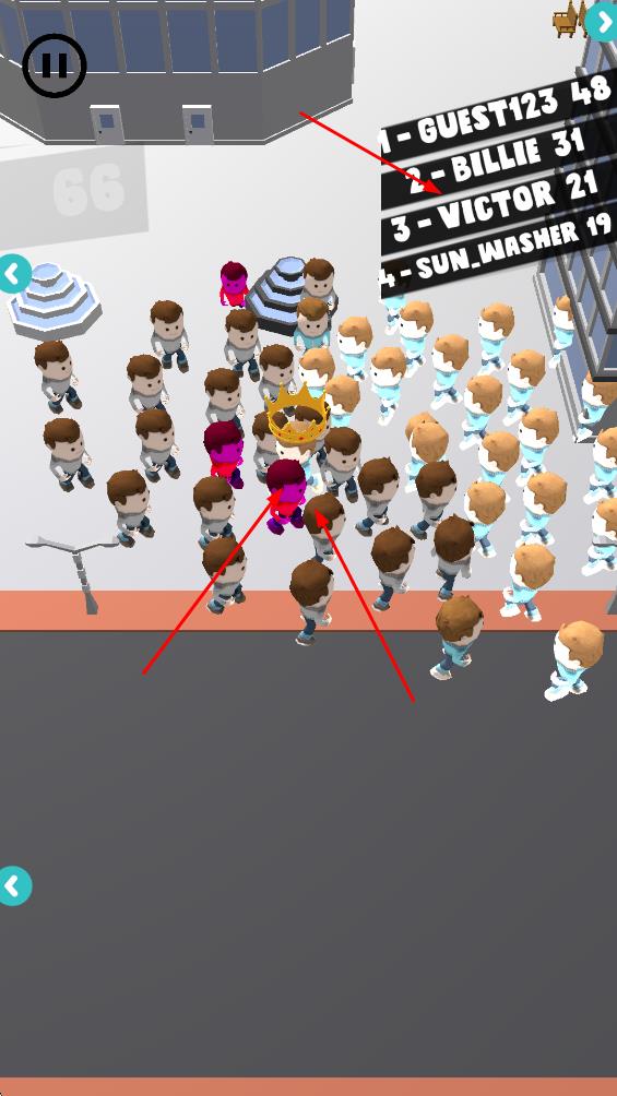 拥挤的人群城市是一款以群体竞技为核心的io休闲作品,采用简约画面与3D卡通场景,玩家通过操控小人队伍吞噬中立人类壮大族群,在避开机关的同时击败敌人与守关人,操作简单易上手,城市会随人群壮大愈发拥挤,带来沉浸式的趣味竞技体验。