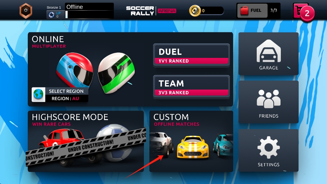 1、在Soccer-Rally-Arena游戏中,进入模式选择界面,挑选适合的游戏模式,开启汽车足球竞技。