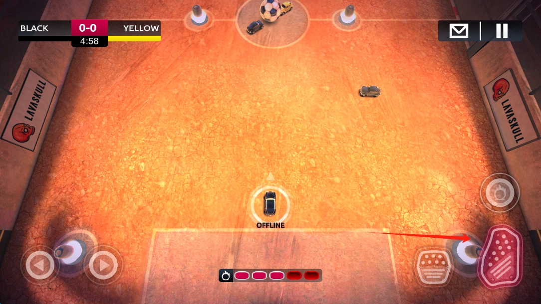 2、游戏时,熟练运用右侧按钮,精准操控汽车方向,在赛场上灵活走位,争夺足球控制权。