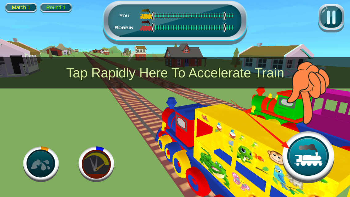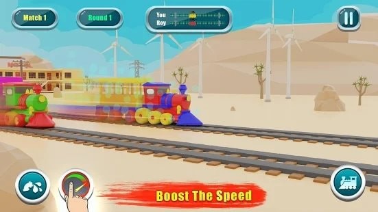 2、快速点击加速按钮提升火车速度,在轨道上与对手竞争通过快速点击,让火车冲刺,体验加速机制。